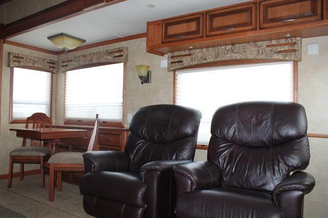 Perfect Full Time Living Rig! This 2013 Mobile Suites By DVR is a beautifully Designed 5th wheel thats loaded with comforts. Amenities include.... Fully Automatic Leveling with 6 point Hydraulic Electric Landing Gear. Central Vacuum, Fireplace with remote, 4 Slide-outs, 2 Ducted Roof A/Cs (Heat Pump), Four Door Refrigerator with Ice-maker, Main Awning, 2 Piece Washer/Dryer, CD Radio, Satellite Dish (self tuning), 2 TVs, 2 DVD Players, Outside Shower, Convection Microwave, 3 Burner Range and Oven. Also has Frameless Windows, Lifetime Roof By Armour, Sleep number King Size (Radius cut) Mattress, under belly Slide-out tray, 2 Full Size Leather Lazy Boy Recliners. A Must See! stop by today and take a LOOK!