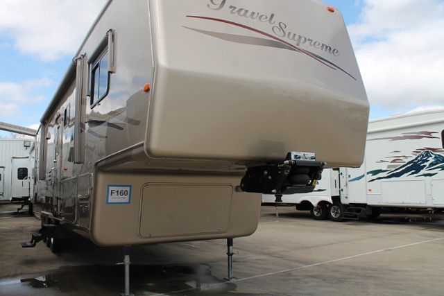 A Must See! Great Full Time RV That has been Well Maintained. This 2006 Travel Supreme has a Trail Air Pinbox and Suspension for a smoother tow experience, Comforts include.... Electric Landing Gear, 2 Roof A/Cs, Double Door Refrigerator, Stand-Alone Ice Maker, Main/Win/Sld Awnings, 2 Piece Washer/Dryer, CD Radio, 2 TVs, DVD Player, Microwave and 3 Burner Range. Open Floor Plan with Plenty of Storage Space and Privacy. The King Size Bed Add to traveling comforts. Don't miss out on this one, Stop By TODAY!