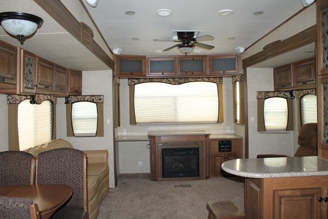 This 2012 Bighorn By Heartland has some really nice features that include.... Electric Landing Gear, 4 Slide-outs, 2 Roof A/Cs, Central Vacuum, Four Door Refrigerator With Ice Maker, Main & Slide Awnings, Washer/Dryer Connections, CD Radio, Outside Shower and Speakers, 2 TVs, DVD Player, Outside Shower, Microwave, 3 Burner Range and Oven. Has a Large Walk in Shower and all the Comforts of Home.