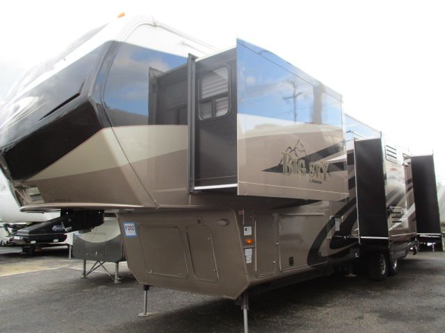 This 2014 Montana Big Sky By Keystone has an Electric Landing Gear, 4 Slide-outs, 2 Ducted Roof A/Cs, Four Door Refrigerator, Main Awning, Satellite Dish, 2 TVs, DVD Player, Outside Shower, 3 Burner Range, Oven and faux wood flinds in the bedroom. Ideal fifth wheel for full=timers. Let's go RVing!