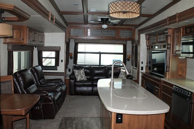 A Must See Bath and Half! This Nearly New 2015 Big Horn By Heartland is perfect for full time living, Comforts include....6 Point Hydraulic/Electric Landing Gear, 3 Slide-outs, 2 Roof A/Cs, Fireplace, Residential SBS Refrigerator, Main Awning, 2 Piece Washer/Dryer, Outside Speakers, 2 TVs, DVD Player, Convection Microwave, 3 Burner Range and Oven. Also has an Island Style Kitchen, Large Bedroom/ Bathroom Space with Full Size Shower, Large Cedar Lined Closet and a King Size Bed for a great nights rest. A well cared for, Sharp looking Rig! (Inside and Outside).