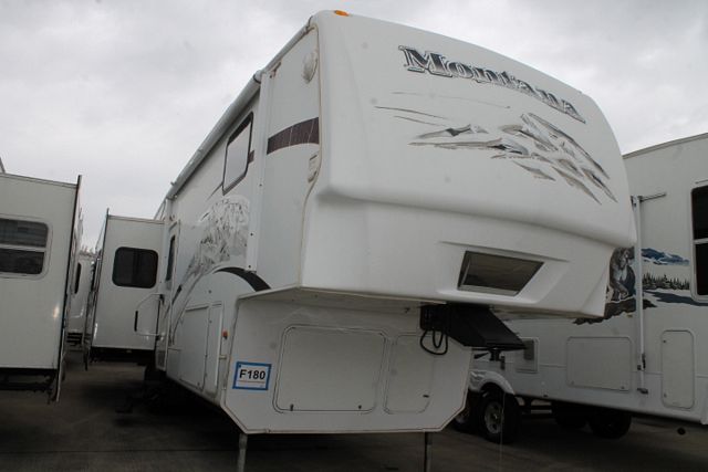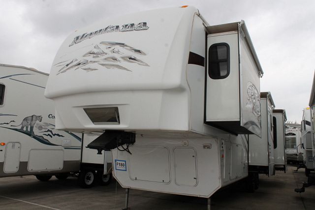 This 2009 Montana 10th Anniversary has an Electric Landing Gear, 4 Slide-outs, 2 Ducted Roof A/Cs, Double Door Refrigerator, Main & Slide Awnings, 1 Piece Washer/Dryer, CD Radio, Heated Tanks, TV, DVD Player, Outside Shower, Convection Microwave, 3 Burner Range and Oven. Also has a Fireplace, Heated tanks, King Size Bed and so much more...Come On Out and take A Look!