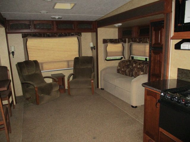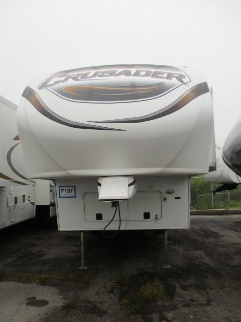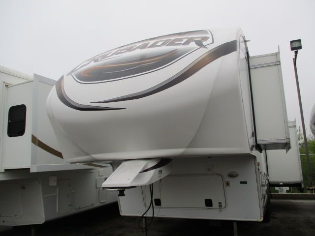 This 2011 Crusader has an Electric Landing Gear, 3 Slide-outs, 1 Ducted Roof A/C, Double Door Refrigerator, Main Awning, CD Radio, Outside Speakers, TV, Outside Shower, Microwave, 3 Burner Range, Oven. Great size fifth wheel for weekending or those long summer vacations. Let's go RVing!