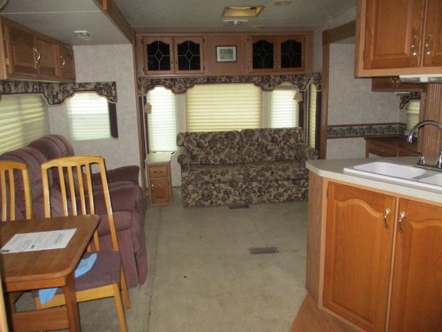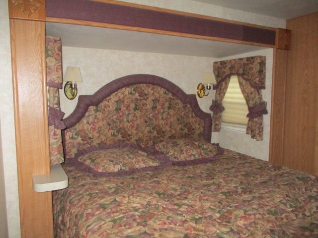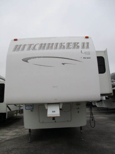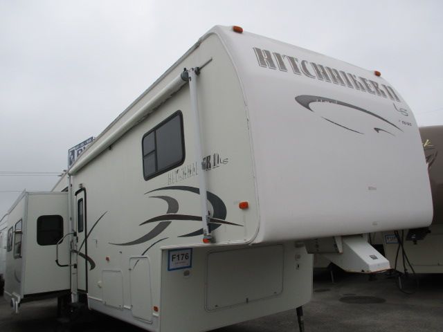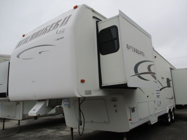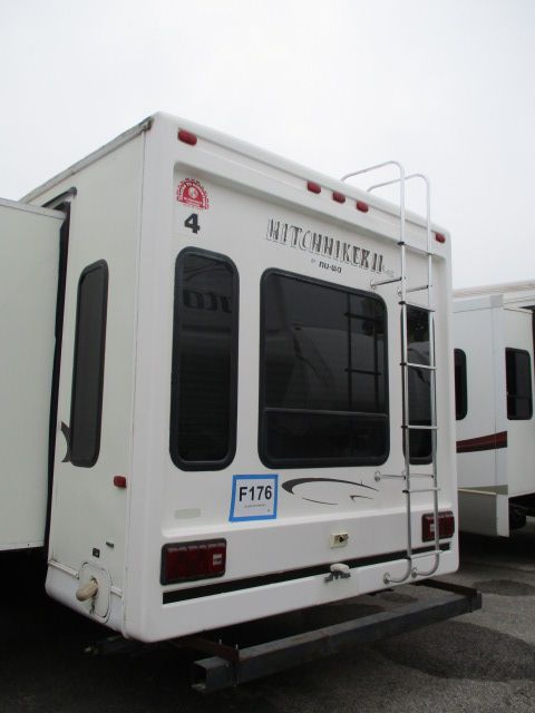 This 2003 Hitchhiker II has an Electric Landing Gear, 3 Slide-outs, 1 Ducted Roof A/C, Double Door Refrigerator, Main Awning, CD Radio, TV, Microwave, 3 Burner Range, Oven. Let's go RVing!