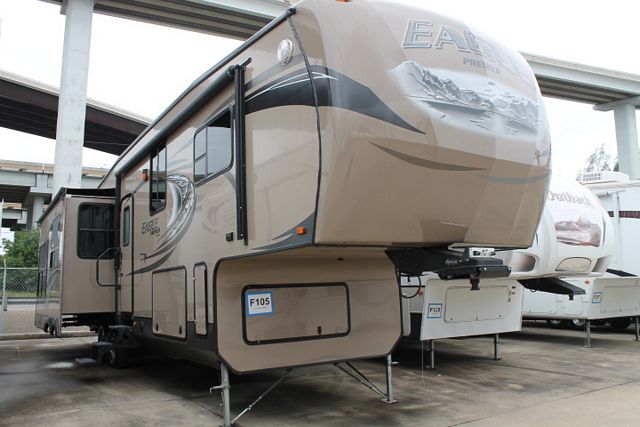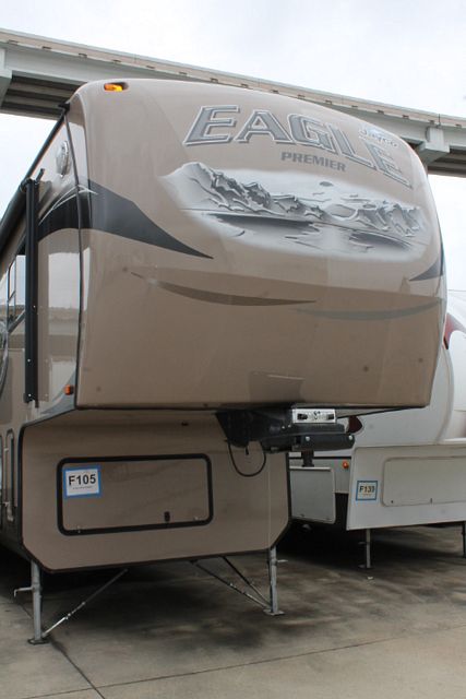 Loaded with Comforts! This 2013 Eagle Premier By Jayco has a Mor Ryde Suspension and Pin Box for a smoother tow experience, It's Features include....Electric Landing Gear, 3 Slide-outs, 2 Ducted Roof A/Cs, Double Door Refrigerator, Main & Slide Awnings, CD Radio, Heated Tanks (Polar Barrier Four Season), Outside Grill Shower and Speakers, 2 TVs, DVD Player, Microwave and 3 Burner Range. Wow! Satellite Dome, Keyless Entry and Pull out Bumper Storage.