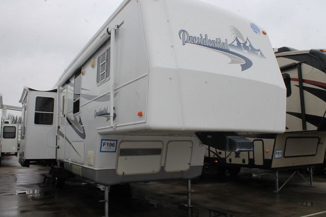 This 2003 Holiday Rambler Presidential is great for full time RVing, Options include....Electric Landing Gear, 3 Slide-outs, 2 Roof A/Cs, Double Door Refrigerator, Main & Slide Awnings, 2 Piece Washer/Dryer, CD Radio, TV, DVD Player, Outside Shower, Convection Microwave and 3 Burner Range. Enjoy the Rv Life Style in the comforts of this Presidential.