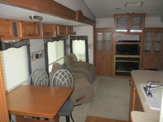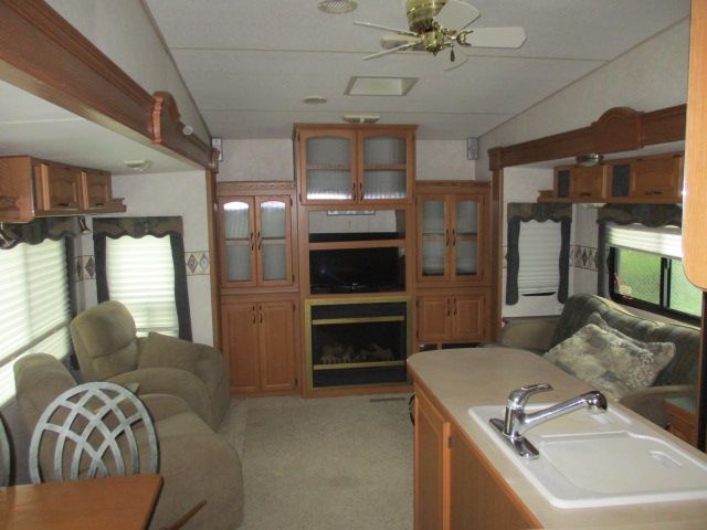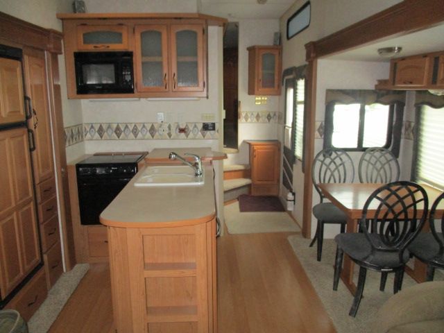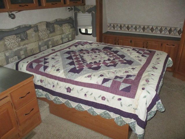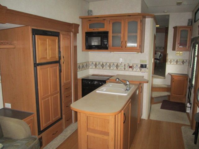 This 2005 Quantum has an Electric Landing Gear, 4 Slide-outs, 1 Ducted Roof A/C, Double Door Refrigerator, Main Awning, 2 TVs, DVD Player, Surround Sound, Outside Shower, Microwave, 3 Burner Range, Oven. Great fifth wheel for full timers. Bonus: New Tires and New Awning in 2016. Let's go RVing!