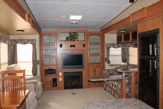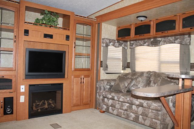 This 2009 Sandpiper By Forest River has a wonderful layout with plenty of space. It's Options include....Electric Landing Gear, 3 Slide-outs, 2 Roof A/Cs, Double Door Refrigerator, Main & Slide Awnings, Washer/Dryer Connections, Outside Speakers, Fireplace, TV, DVD Player, Microwave, 3 Burner Range and Oven. Includes a King Size Bed for a great nights rest. Head out to your favorite spot with all the comforts of home.
