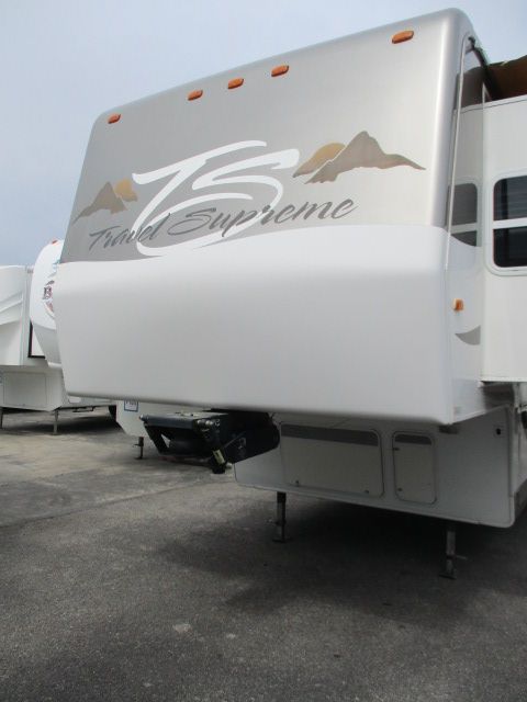 This 2007 Travel Supreme has a Mor Ryde Suspension, Trail Aire Pin Box, Electric Landing Gear, 3 Slide-outs, 2 Ducted Roof A/Cs, Big Foot Auto Levelers, 4 Door Refrigerator, Main/Win/Sld Awnings, Washer/Dryer, Inverter, Satellite Dish & Receiver, 2 TVs, DVD Player, Outside Shower, Microwave, Amana Range with 3 Sealed Burners, Oven. Bonus: Upgraded Shower Head with Cut Off Switch on Hose - Save on Water. Enjoy your vacation time in this luxury fifth wheel. Let's go RVing!