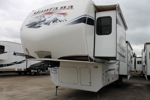 Well maintained, Beautiful 2012 Montana By Keystone Is Loaded with comforts that include.... Mor/Ryde Pin Box and Fully Automatic 6 Point Hydraulic/Electric Landing Gear, 3 Slide-outs, 2 Roof A/Cs, Four Door Refrigerator, Main & Slide Awnings, Washer/Dryer Connections, Central Vacuum, CD Radio, Satellite Dish, Outside Shower and Speakers, 2 TVs, DVD Player, Convection Microwave, 3 Burner Range and Oven. This Montana is the perfect home away from home. A Must See 5th wheel !