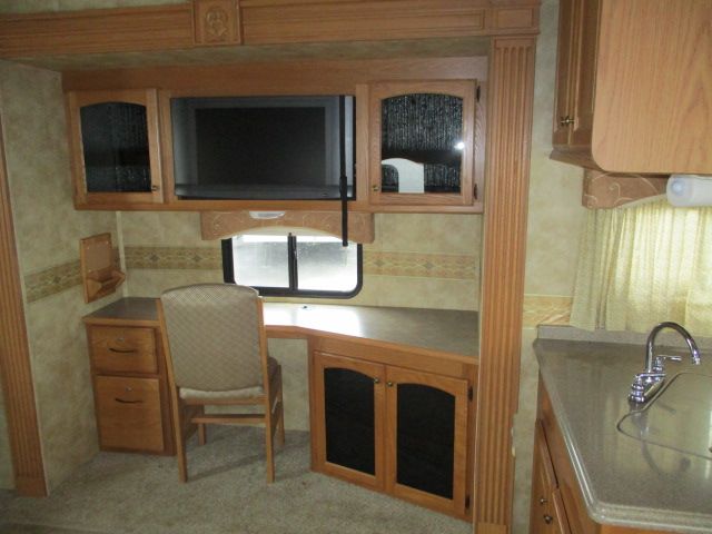 This 2008 Bighorn has an Electric Landing Gear, 3 Slide-outs, 2-Ducted Roof A/Cs, 2-Door Refrigerator, Main Awning, Washer/Dryer Connections, CD Radio, 2 TVs, DVD Player, Outside Shower, Microwave, 3 Burner Range, Oven. Impressive RV inside and out! View the amazing lakes and forests of the USA!