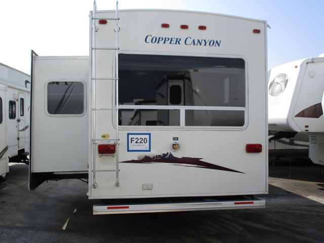 This 2006 Copper Canyon has an Electric Landing Gear, 2 Slide-outs, 1-Ducted Roof A/C, 2-Door Refrigerator, Main Awning, DVD Player, Outside Shower, Microwave, 3 Burner Range, Oven. Enjoy the road no matter your destination! Family friendly rig, great for last trips!