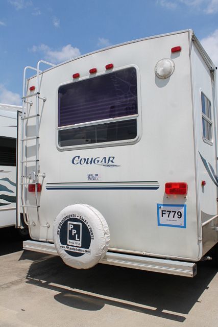 This 2004 Cougar By Keystone could be your next 5th wheel. It sleeps 6 and has a rear kitchen with plenty of space for cooking. Features include.... Electric Landing Gear, 2 Slide-outs, 1 Ducted Roof A/C, Double Door Refrigerator, Main Awning, CD Radio, DVD Player, Microwave, 3 Burner Range and Oven. Get out and Go CAMPing!