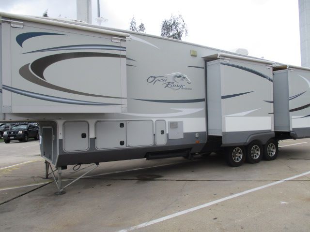 This 2012 Open Range Residential has a really great layout thats perfect for full time living. Features include....Automatic Leveling with Electric landing Gear and Stabilizing Gear, 4 Slide-outs, 2 Ducted Roof A/Cs, SBS Refrigerator, Main & Slide Awnings, 2 Piece Washer/Dryer, CD Radio, Satellite Dish & Receiver, 2 TVs, DVD Player, Microwave, 3 Burner Range and Oven. Also Includes A Four Seasons Package. Cold Weather Skirt, Slam Hatch Baggage Doors, Nitro Filled Tires, Corian Counter Tops and so much more...