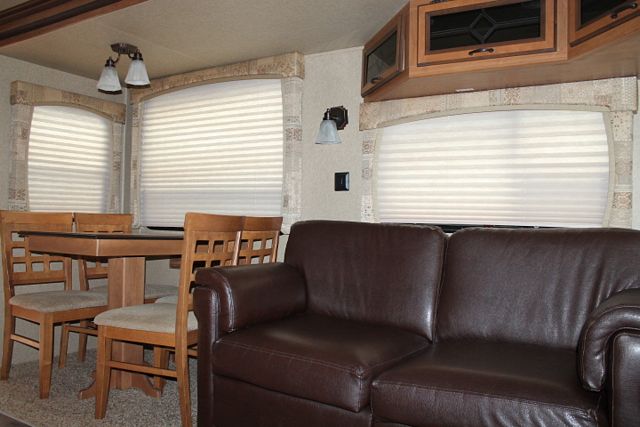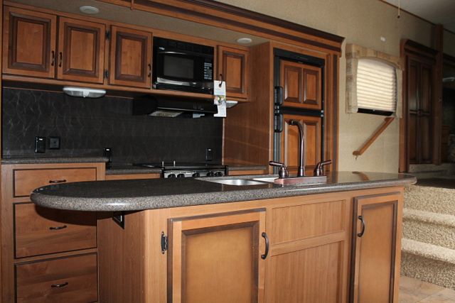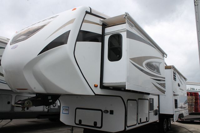 This 2012 Cruiser Patriot Provincial is loaded with storage space. Features include ....Electric Landing Gear, 3 Slide-outs, 2 Roof A/Cs, Double Door Refrigerator, Main & Slide Awnings, CD Radio, Satellite Dish, Outside Speakers, TV, DVD Player, Outside Shower, Microwave, 3 Burner Range and Oven. Sharp looking 5th wheel with a nice roomy floor plan.