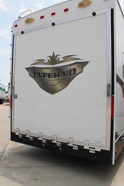 Toyhauler ! This 2009 Inferno By K-Z has a 12' Cargo space thats great for your toys or any other cargo. Features include....Hydraulic/Electric Landing Gear, Trail Air Pin and Suspension, 3 Slide-outs, 2 Ducted Roof A/Cs, Double Door Refrigerator, Main Awning, CD Radio, Outside Speakers, 2 TVs, DVD Player, Outside Shower, Microwave, 3 Burner Range and Oven. Gather family and friends then hit the road to great adventures. Go CAMPing!