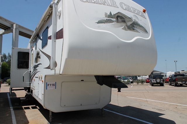 This 2008 Cedar Creek By Forest River has a spacious bedroom and plenty of storage. Features include....Electric Landing Gear, 3 Slide-outs, 2 Roof A/Cs, Double Door Refrigerator, Stand-Alone Ice Maker, Main Awning, CD Radio, Outside Shower and Speakers, DVD Player, Microwave and 3 Burner Range. Get out and enjoy the great outdoors. Go CAMPing!