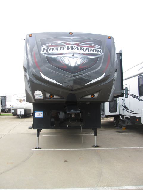 This 2014 Road Warrior Has A Hydraulic Landing Gear, Amenities Include... 2 Slide-Outs, Onan Gas Generator, 2 Ducted Roof A/Cs, 4dr T Refrigerator, Main Awning, Washer/Dryer, CD Radio, Inverter, Outside Entertainment System, 4 TVs, DVD Player, Outside Shower, Microwave, 3 Burner Range And Oven. Make Camping A Part Of Your Life With This Road Warrior, It's Sure To Make Any Camping Trip A Pleasurable One. Load Up The Toys And Let's Hit The Road!!