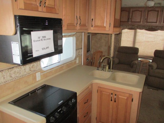 This 2006 Everest By Keystone has an Electric Landing Gear. Comforts include.....3 Slide-outs, 1 Ducted Roof A/C, Ceiling Fan, 2 G/E Refrigerator, Main Awning, TV, DVD Player, Outside Shower, Microwave and Oven. Tires and Spare are new with less than 500 miles on them. A Spacious Floor Plan - let's go RVing!
