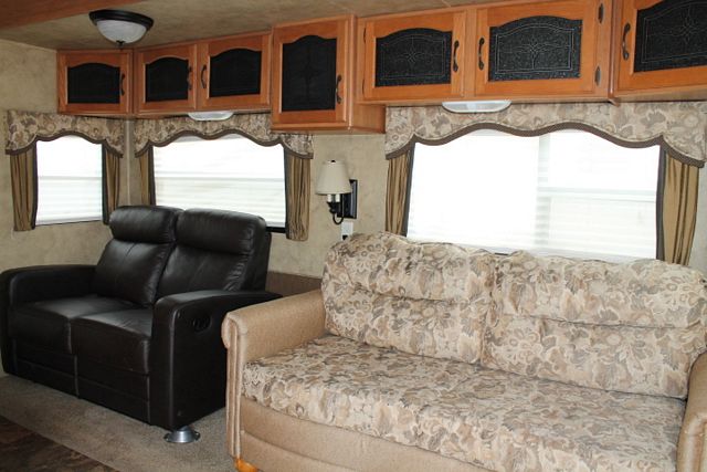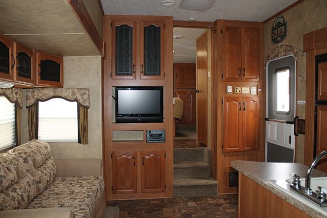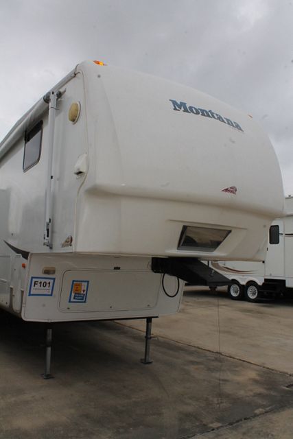 Toyhauler with Desk ! This 2008 Montana Mountaineer By Keystone Has a really nice layout for out of town travels. It's Options include....Electric Landing Gear, 3 Slide-outs, 1 Roof A/C, Double Door Refrigerator, Main Awning, 1 Piece Washer/Dryer, CD Radio, Satellite Dish, 2 TVs, DVD Player, Outside Shower, Microwave, 3 Burner Range and Oven. Includes an Outdoor Grill for great family meals.