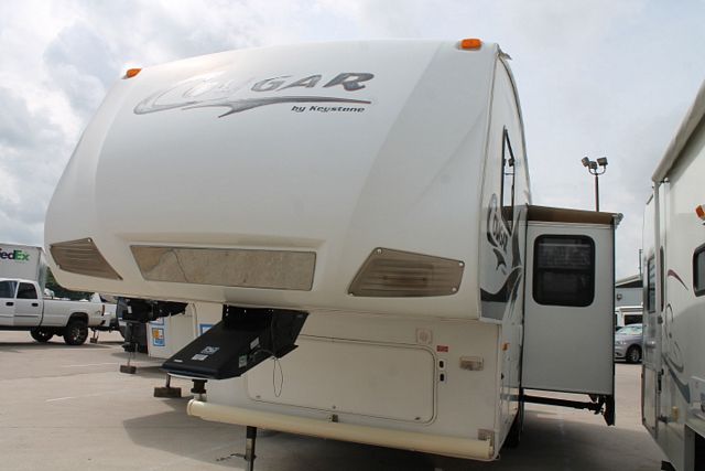 Rear Kitchen Floor Plan ! This 2007 Cougar By Keystone is perfect for weekend getaways. It's Options include....Electric Landing Gear, 1 Slide-out, 1 Ducted Roof A/C, Double Door Refrigerator, Main & Slide Awnings, CD Radio, TV, DVD Player, Outside Shower, Microwave, 3 Burner Range and Oven. Also has the Polar Package and a Rack on the Back for Extra Storage.