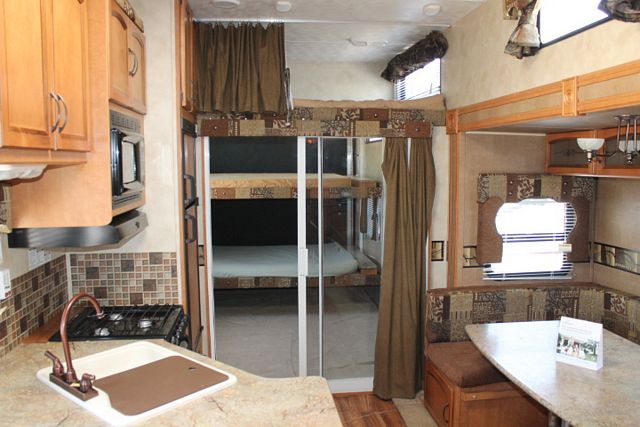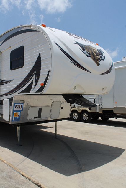 Toyhauler ! This 2013 Puma Unleashed Bunkhouse floor plan sleeps up to 10. Features include....Electric Landing Gear, 1 Slide-out, 1 Roof A/C, Double Door Refrigerator, Main Awning, CD Radio, Outside Speakers, TV, DVD Player, Microwave, 3 Burner Range and Oven. Has a Queen size loft the kids will love and a nice size cargo space to carrying your toys. Hit the road to some wonderful adventures with family and friends.