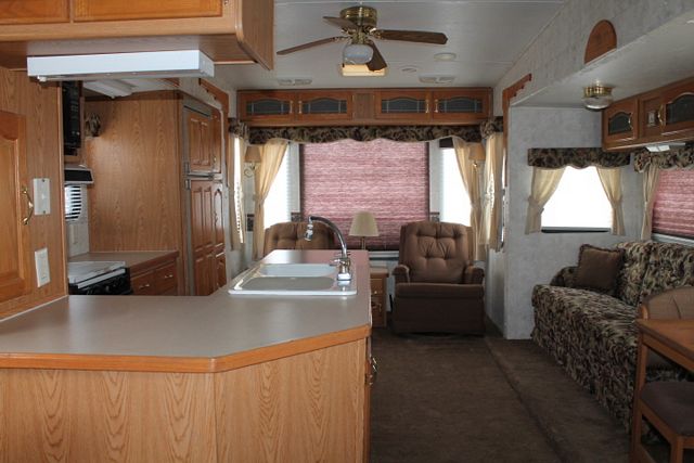 An Affordable 5th wheel ! This 2000 Montana By Keystone is perfect for full time living with all the comforts of home and plenty of storage. Options include.... Electric Landing Gear, 3 Slide-outs, 2 Ducted Roof A/Cs, Double Door Refrigerator, Main Awning, Washer/Dryer Connections, CD Radio, TV, DVD Player, Outside Shower, Microwave, 3 Burner Range and Oven. This Montana has a long counter space thats ideal for cooking. It's a Nice Older Rig that has been well taken care of. A Must See !