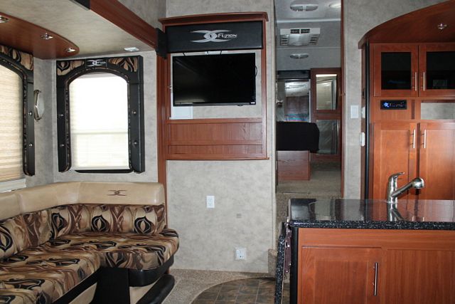 Toyhauler with 10 x 8 Cargo Space ! This 2009 Keystone Fuzion is perfect for hauling Bikes, Atv's, Golf Carts, Quad's and so much more. Features include....Electric Landing Gear and Stabilizers, 2 Hydraulic Slide-outs, Onan Gas Generator, 2 Roof A/Cs, Double Door Refrigerator, Electric Main Awning, Washer/Dryer Connections, CD Radio, Outside Shower and Speakers, TV, DVD Player, Microwave, 3 Burner Range and Oven. Wow! A Remote control that operates the Landing Gear/Stabiliers, Main Awning, Slides and Security Lights. Thats not all it Also has a 7' Spring Ramp Door, 30gal Fueling Station with pump, 3 Propane Tanks, Dual Battery Trays, Sliding Glass Door, Heated, Insulated, Enclosed holding tanks and so much more..