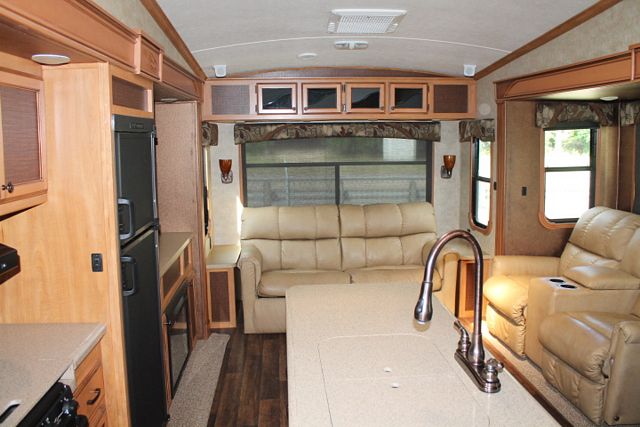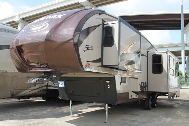 This 2014 Phoenix By Shasta / Forest River is loaded with comforts that include.... Leather Sofa and Theater Seat, Entertainment Center with Fireplace, Electric Landing Gear, 3 Slide-outs, 2 Roof A/Cs, Double Door Refrigerator, Electric Main Awning, Washer/Dryer Connections, CD Radio, TV, DVD Player, Satelitte Dish with Receiver, Outside Shower and Stereo, Microwave, 3 Burner Range and Oven. Also has a Skylite that brightens up the Island Style Kitchen. Wonderful Layout with all the comforts of home.
