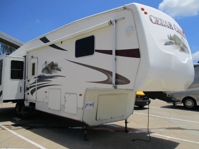Full Timimg Rig ! This 2006 Cedar Creek By Forest River has all comforts of home including a Fireplace. Features include....Trail Air Suspension Electric Landing Gear, 4 Slide-outs, 2 Ducted Roof A/Cs, Double Door Refrigerator, Main Awning, Washer/Dryer Connections, CD Radio, 2 TVs, DVD Player, Outside Shower, Microwave, 3 Burner Range and Oven. Stop by today and take a LOOK !
