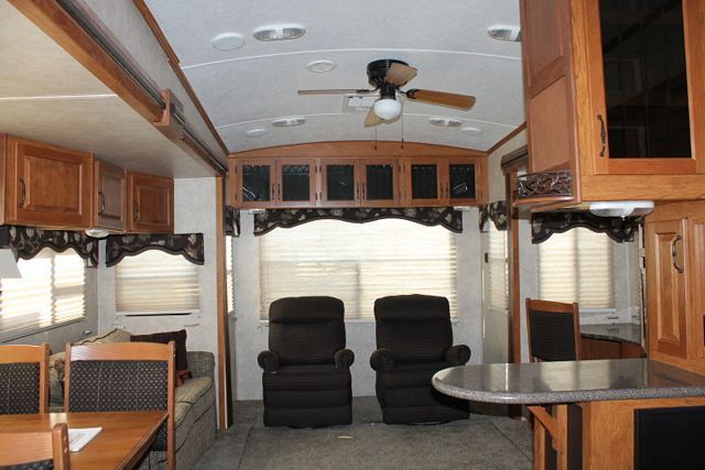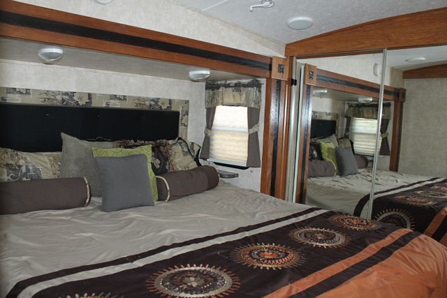 This 2013 Montana Mountaineer By Keystone has a wonderful floor plan thats includes a King size bed. Features include....Electric Landing Gear, 4 Slide-outs, 1 Roof A/C, Four Door Refrigerator, Main Awning, 1 Piece Washer/Dryer, CD Radio, 2 TVs, DVD Player, Microwave and 3 Burner Range. Large 5th wheel that has plenty of storage on the inside and outside. Enjoy some freetime at your favorite spot with this comfortable Montana.