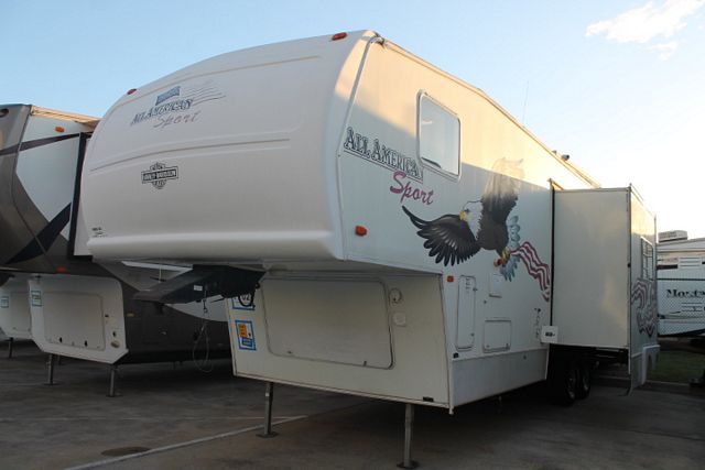 This 2003 All American Sport By Forest River has a 9'x 10" By 7' X 8" of cargo space to haul all your toys. Options include....Electric Landing Gear, 1 Ducted Roof A/C, Double Door Refrigerator, Main Awning, Outside Shower, Microwave, 3 Burner Range and Oven. Load the your Toys and hit the road to great adventures.
