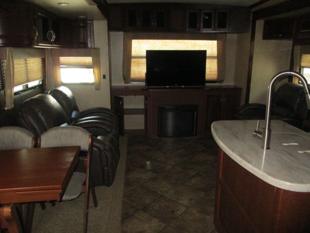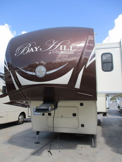 Enjoy Family Time in This Nearly New 2014 Bay Hill By Evergreen. This Could be Your Next RV. It's Features Include....Hydraulic/Electric Landing Gear, 3 Slide-outs, Electric Main Awning, 2 Ducted Roof A/Cs, 4 Door Refrigerator, Washer/Dryer Connections, CD Radio, Outside Shower and Speakers, 2 TVs, DVD Player, Microwave, 3 Burner Range and Oven. This Wonderful 5th Wheel Also Has a Dishwasher, Ceiling fan, Fireplace, Central Vacuum, Large Shower, King Size Bed, Plenty of Storage Space and so Much More... Come Out and Take a LOOK!