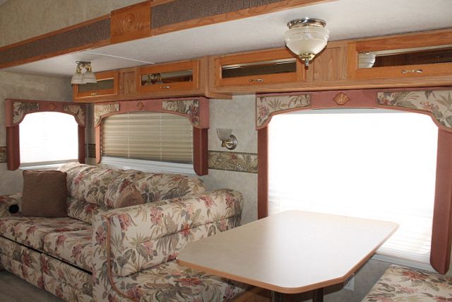 This 2005 Jayco Eagle has plenty of space and storage. It's Comforts include.... Electric Landing Gear, 2 Slide-outs, 1 Ducted Roof A/C, Double Door Refrigerator, Main & Slide Awnings, CD Radio, DVD Player, Surround Sound, Outside Shower, Microwave, 3 Burner Range and Oven. Head out to your favorite spot with this Jayco in tow.