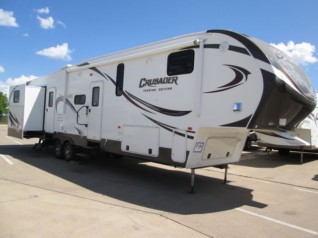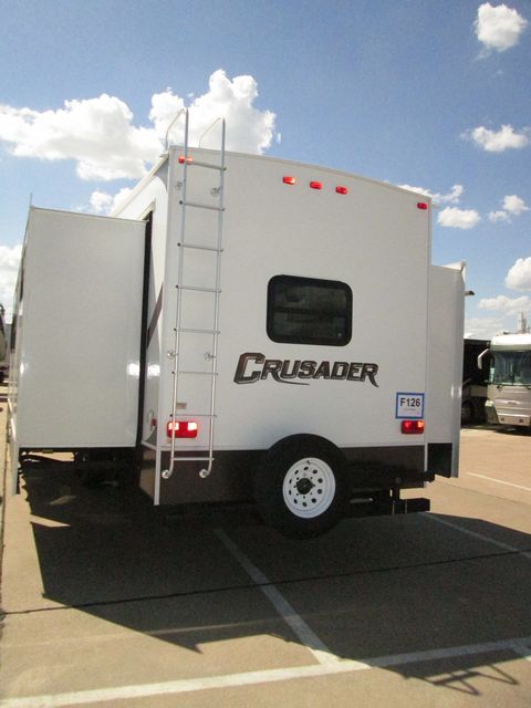 This Beautiful 2013 Crusader Has An Electric Landing Gear, Options Include... 4 Slide-Outs, 2 Roof A/Cs, 2-Door Refrigerator, Main Awning, Washer/Dryer, CD Radio, Outside Speakers, TV, DVD Player, Outdoor Kitchen, Outside Shower, Microwave, 3 Burner Range And Oven. This Crusader Has A Great Family Floorplan, Plenty Of Room For Everyone And Their Stuff. The Perfect Home Away From Home, Let's Go Traveling Now!!