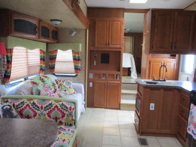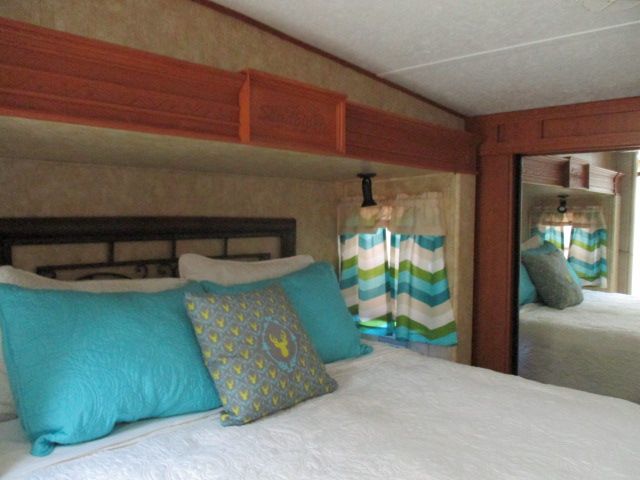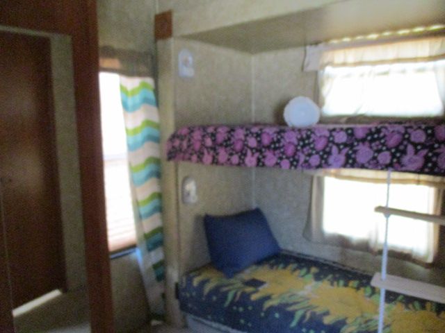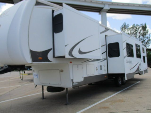 Bath and Half, Bunkhouse Floor Plan This 2008 Sandpiper By Forest River has plenty of space for everyone. Features include....Electric Landing Gear, 4 Slide-out's, 2 Roof A/C (1 Ducted), Double Door Refrigerator, Window Awnings, CD Radio, Outside Shower and Speakers, TV, DVD Player, Microwave, 3 Burner Range and Oven. Gather the Family then Hit the Highway to your Favorite Destinations.