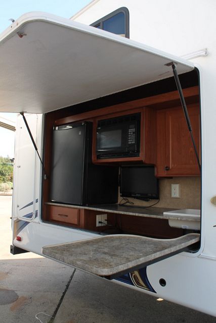 Outdoor Kitchen ! This 2012 Heartland Sundance has a nice layout for family traveling. It's features include....Electric Landing Gear, 3 Slide-outs, 2 Roof A/Cs, Double Door Refrigerator, Main Awning, Washer/Dryer Connections, CD Radio, TV, Outside Shower, Microwave and 3 Burner Range. Head out to your favorite spot with this Sundance in tow.