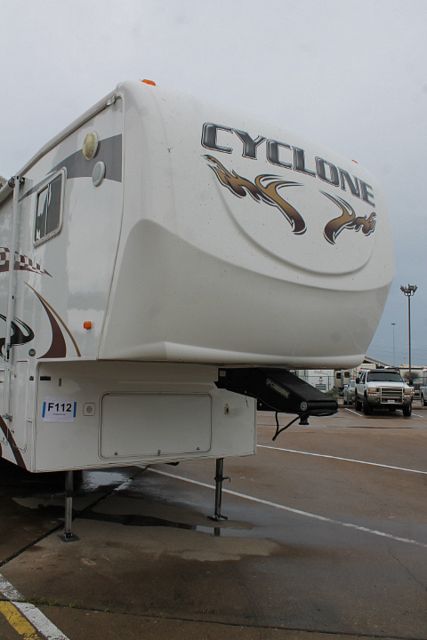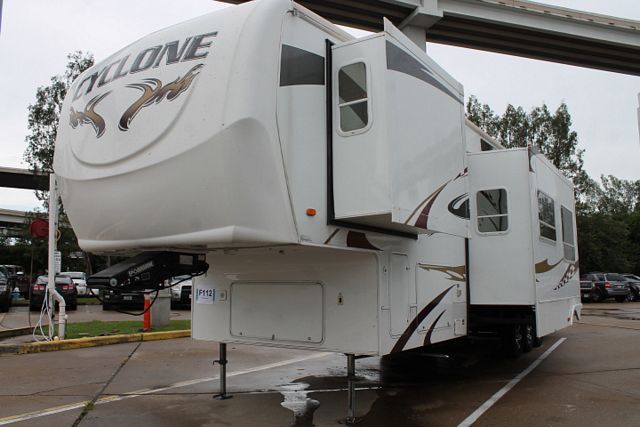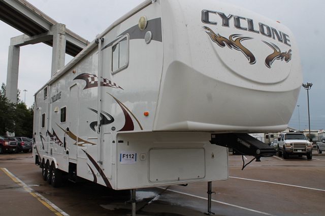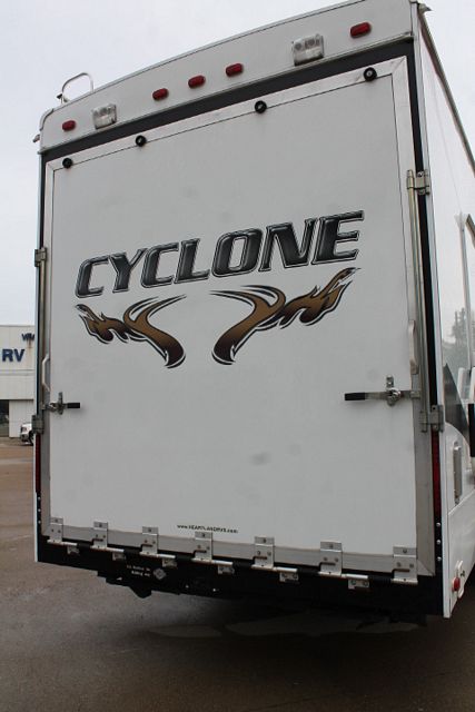Spacious Toyhauler with sleeping for up to 12. It has Four Queens Beds and Two Doubles. This 2008 Heartland Cyclone has plenty of sleeping accommodations and a nice size cargo area. Features include....Electric Landing Gear, 2 Slide-outs, Onan Gas Generator, 2 Ducted Roof A/Cs, Double Door Refrigerator, Main Awning, Washer/Dryer Connections, CD Radio, Outside Shower and Speakers, TV, DVD Player, Microwave, 3 Burner Range and Oven. Enjoy your time away in this well maintained Cyclone. Stop By TODAY!