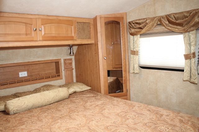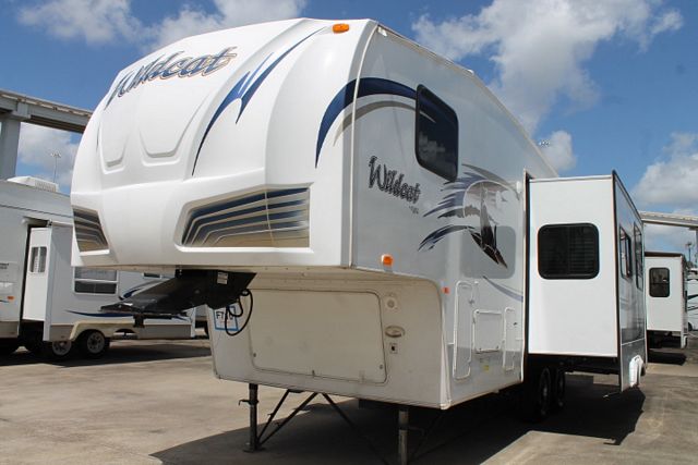 single bunk floor plan sleeps 8. This 2010 Wildcat By Forest River is perfect for vacations or weekend getaways. Features include....Electric Landing Gear, 1 Slide-out, 1 Roof A/C, Double Door Refrigerator, Main Awning, CD Radio, Outside Shower and Speakers, TV, 2 DVD Players, Microwave, 3 Burner Range and Oven. Enjoy free time at your favorite spot.