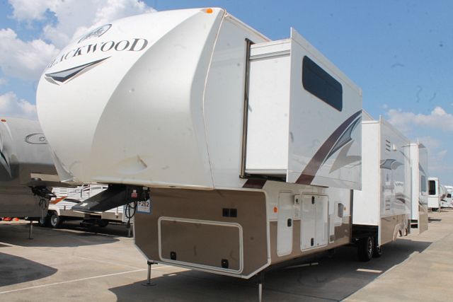 Beautiful Bunkhouse, family friendly, bath and half floor plan. A MUST SEE! This 2013 Redwood Blackwood is loaded with comforts that include....Electric Landing Gear, 4 Slide-outs, Onan Propane Generator, 2 Ducted Roof A/Cs, Double Door Refrigerator, Main Awning, Washer/Dryer Connections, CD Radio, 2 TVs, DVD Player, Outside Shower, Microwave, 3 Burner Range and Oven. Nice 5th wheel for all of your travels and perfect for entertaining guest while your away.