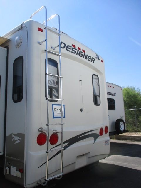 This 2008 Jayco Designer has a 3 Slide-outs, 2 Ducted Roof A/Cs, Double Door Refrigerator, Main & Slide Awnings, 1 Pc Washer/Dryer Unit, CD Radio, Outside Stereo, 2 TVs, DVD Player, Outside Shower, Convection Microwave, 3 Burner Range, Fantastic Fan, Fire Place. Ready to See America..