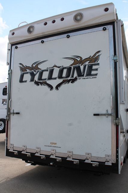 Wow! A must see Toyhauler with 4 queen beds and a bath and half floor plan ! This 2009 Cyclone By Heartland has lot's of wonderful features that include....Sleeping accommodations for up to 10, Electric Landing Gear and Stabilizers, 3 Slide-outs, Onan Gas Generator, 2 Ducted Roof A/Cs, Double Door Refrigerator and Single Door Refrigerator, Central Vacuum, Main Awning, Washer/Dryer Connections, CD Radio, Heated Tanks, Outside Shower and Speakers, 2 TVs, DVD Player, Microwave, 3 Burner Range and Oven. Bonus: Fueling Station thats great for quick fill and hours of continous fun. Loaded the toys and hit the highway to your favorite spot TODAY!