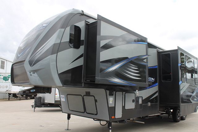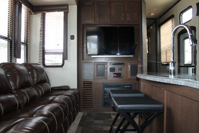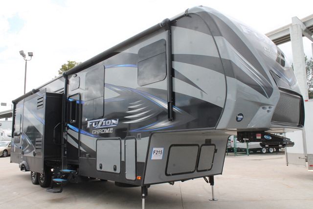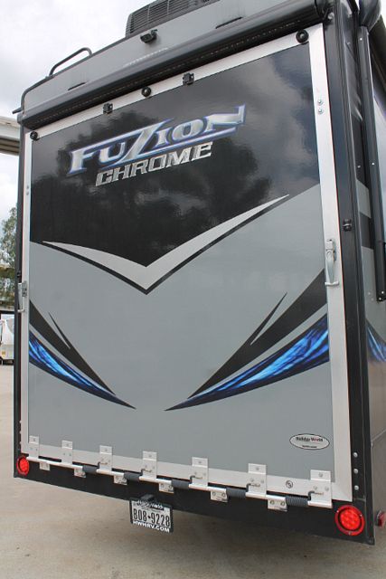 Beautiful Toyhauler thats perfect for the track or any adventures. This Very Clean, Sharp Looking 2015 Fuzion Chrome By Keystone RV is loaded with Comforts that include....Automatic Leveling with 6 Point Hydraulic/Electric Landing Gear, MorRyde Pin Box and Suspension, 3 Slide-outs, Onan Gas Generator, 2 Ducted Roof A/Cs, Four Door Refrigerator, Main Awning, Washer/Dryer Connections, CD Radio, Outside Shower and Speakers, 4 TVs, DVD Player, Microwave, 3 Burner Range and Oven. Just a few more things: Central Vacuum, Fireplace, Chrome package with Keyshield paint, Screen Door for Floating Patio with steps. Frameless Tinted windows with Custom Wooden blinds and so much more.....