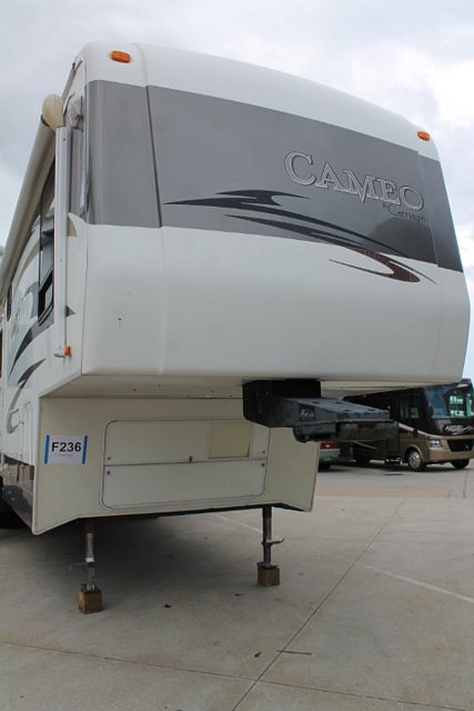 Full Timimg Rig! This 2007 Carriage Cameo has a Mor Ryde Suspension for a smoother tow experience. It's comforts include....Electric Landing Gear, 3 Slide-outs, 2 Ducted Roof A/Cs, Four Door Refrigerator, Main Awning, Washer/Dryer Connections, Fireplace, CD Radio, TV, DVD Player, Microwave, 3 Burner Range and Oven. This Cameo has a wonderful layout with a King Size Bed for a great nights rest.