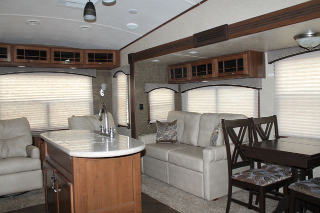 Wow! A perfect home away from home, This Hardly Used 2015 Heartland Sundance has a brown and beige exterior and wonderful interior with neutral colors through out. A nice layout for a small family or couple on the go. It's Features include.... Frameless Tinted Windows, Electric Landing Gear and Stabilizers, 3 Slide-outs, 2 Roof A/Cs, Double Door Refrigerator, Main Awning, 1 Piece Washer/Dryer, Winegard Automatic Satellite Dish, CD Radio, Fireplace, Heated Tanks, Outside Shower and Speakers, 2 TVs, DVD Player, Microwave, 3 Burner Range and Oven. It also includes a Memory Foam Mattress for a great nights rest.