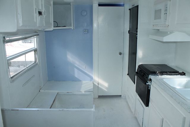 (BEING SOLD COMPLETELY AS IS) It has a fresh coat of paint and (will need a little tlc) ! This Little 5th wheel is a 2002 Aljo By Skyline and it will need some work on the inside. It's Options include....1 Roof A/C, Double Door Refrigerator, Main Awning, CD Radio, Microwave, 3 Burner Range and Oven. It has a Queen bed and Bench with no table or cushions for the dinette/table. Sofa frame is their but shevles have been built over it and it has no cushion. Will needs some work but it could be home for someone in need. (Great for the handyman)(BEING SOLD COMPLETELY AS IS)