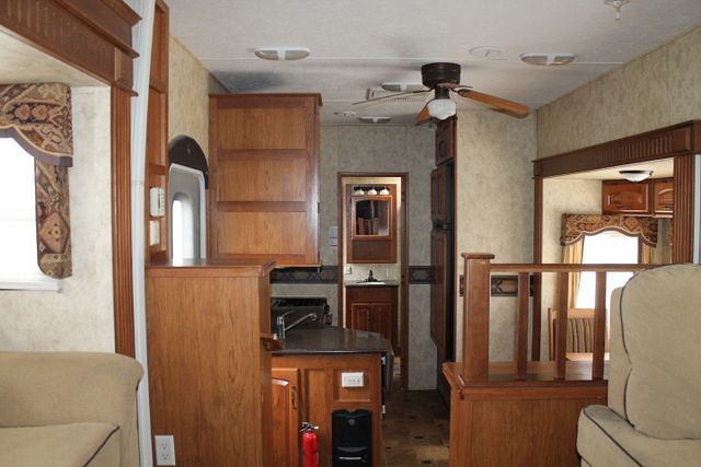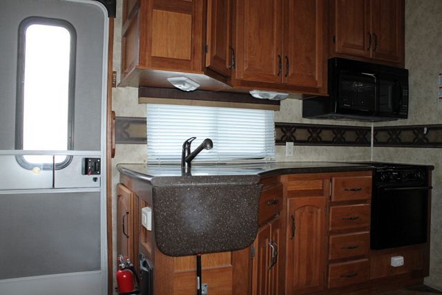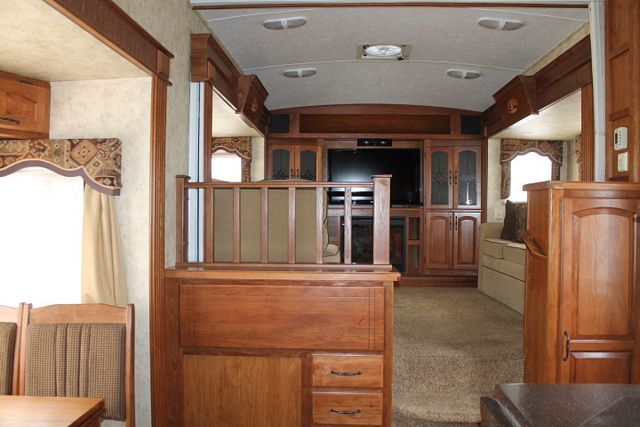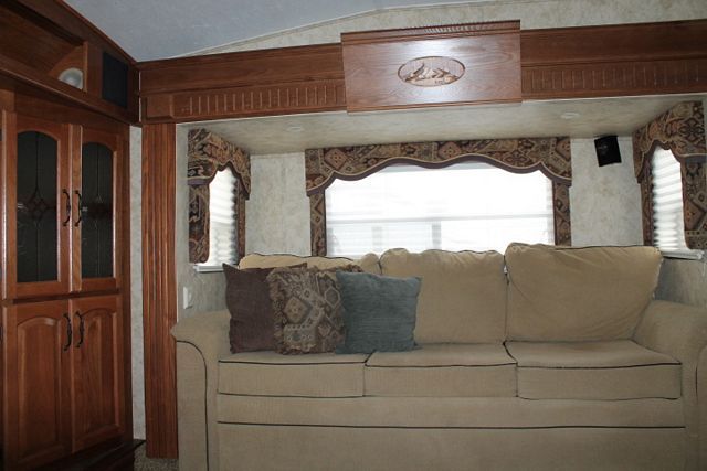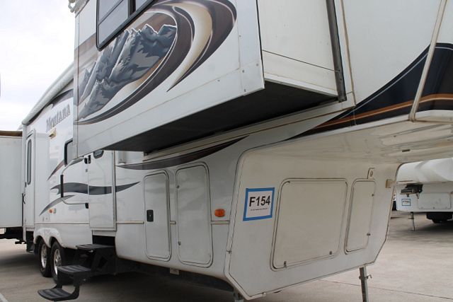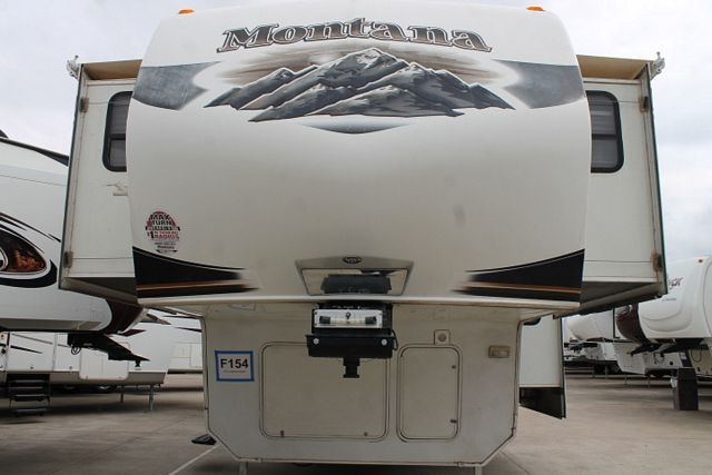 This 2011 Montana Hickory has an Electric Landing Gear, 5 Slide-outs, Onan Propane Generator, 2 Ducted Roof A/Cs, 4 Door Refrigerator, Main & Slide Awnings, Washer/Dryer Connections, 2 TVs, DVD Player, Outside Shower, Microwave, 3 Burner Range, Oven, Large RV, Front Living Room.. Popular Plan.