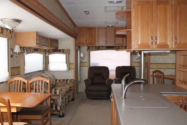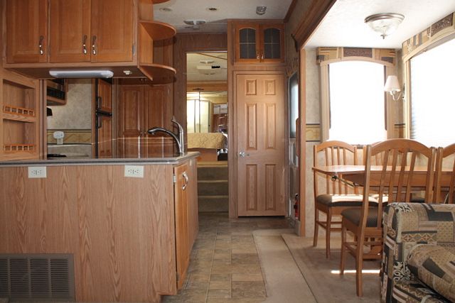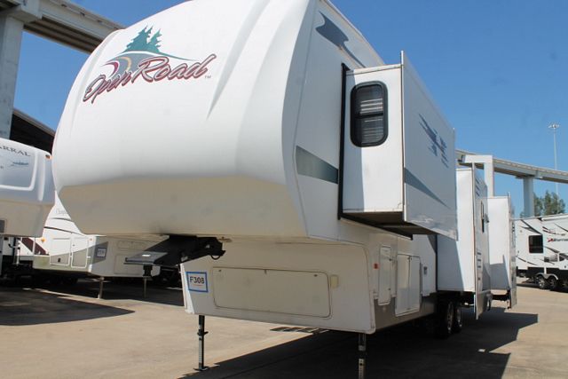 This 2007 Open Road By Pilgrim Int. has a nice kitchen with lot's of counter space. Options include....Electric Landing Gear, 4 Slide-outs, 2 Roof A/Cs, Double Door Refrigerator, Main Awning, Washer/Dryer Connections, CD Radio, Outside Speakers, TV, DVD Player, Outside Shower, Microwave, 3 Burner Range and Oven. Includes a King Size Bed and plenty of Storage.