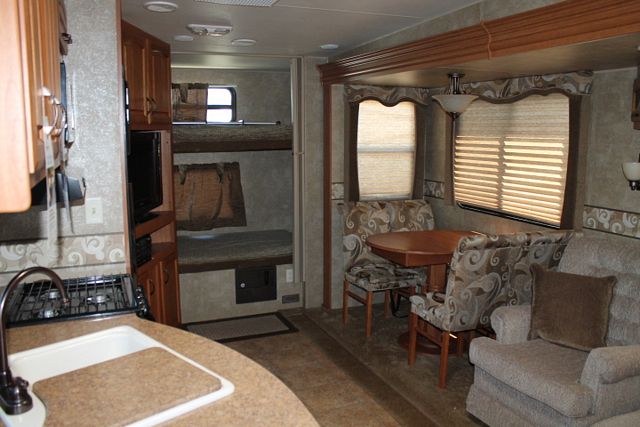Sleeping accommodations for up to 8 with the bunks. This Sharp looking 2010 Durango 1500 By K-Z has a nice family friendly floor plan. It's options include....Electric Landing Gear, 1 Slide-out, 1 Roof A/C, Double Door Refrigerator, Main & Slide Awnings, Outside Speakers, 2 TVs, Microwave, 3 Burner Range and Oven. Bonus: also includes an Outdoor Kitchen for wonderful family meals.