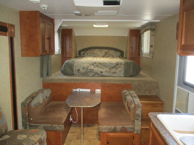 This 2011 Nomad has an Electric Landing Gear, 1 Slide-out, 1 Ducted Roof A/C, Double Door Refrigerator, Slide Awnings, Outside Speakers, TV, Microwave, 3 Burner Range, Oven, Compact yet Light Weight to be Pulled by a Smaller Pick up.